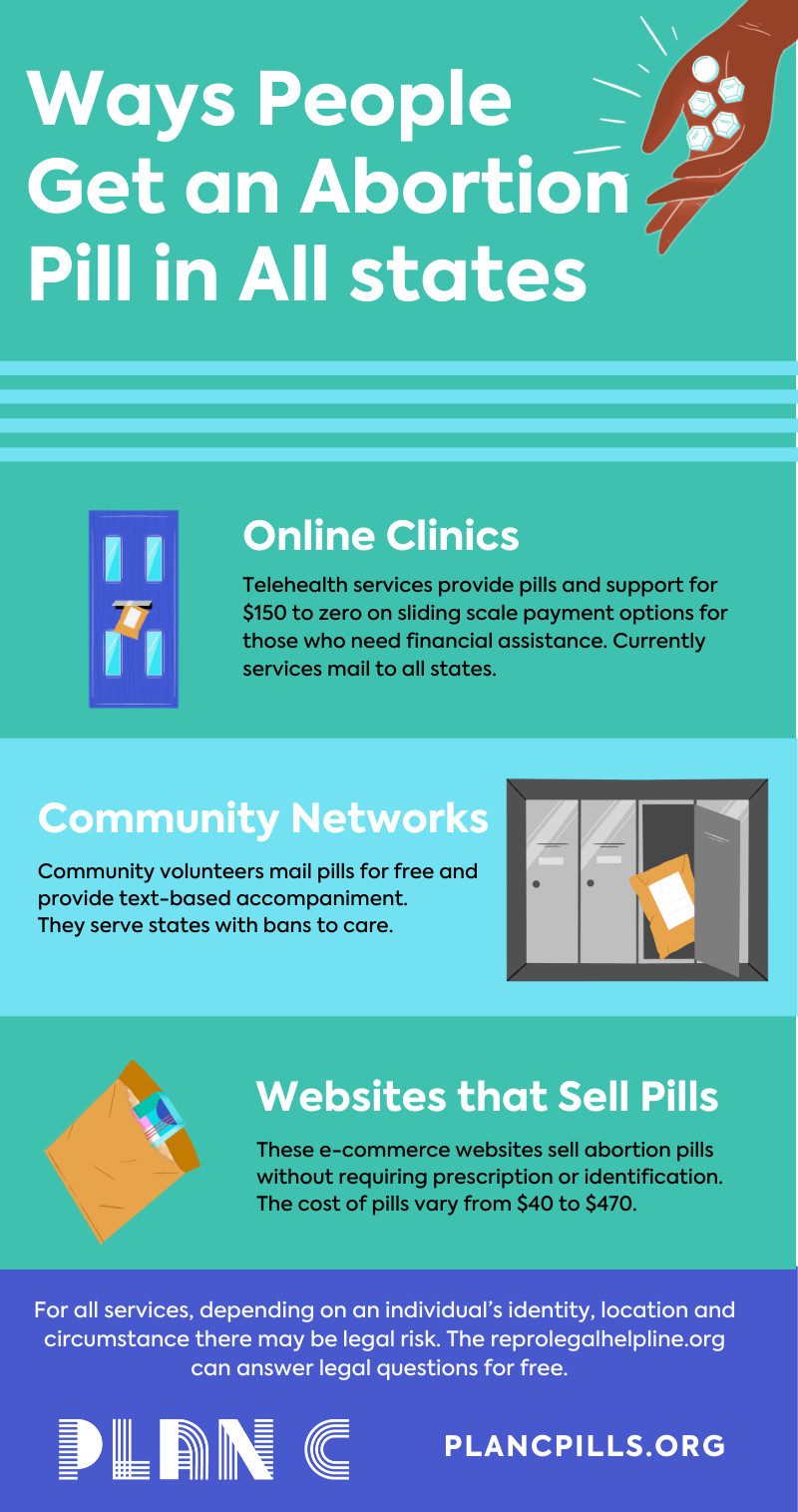 Según la investigación de Plan C, las pastillas abortivas pueden pedirse por Internet y enviarse por correo a todo el país. Aunque estos servicios realizan entregas en todo EE.UU., difieren en la forma en que proporcionan acceso en línea a las pastillas abortivas abortivas. Dependiendo de la ubicación y las circunstancias, también puede haber riesgos legales asociados con el uso de estos servicios.