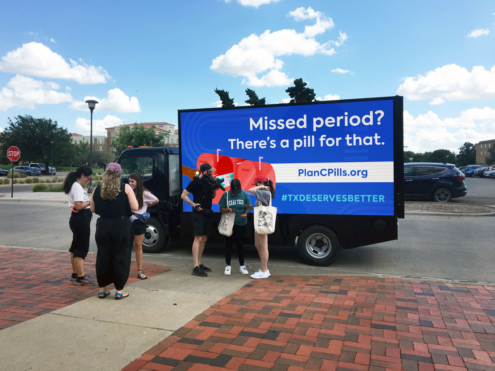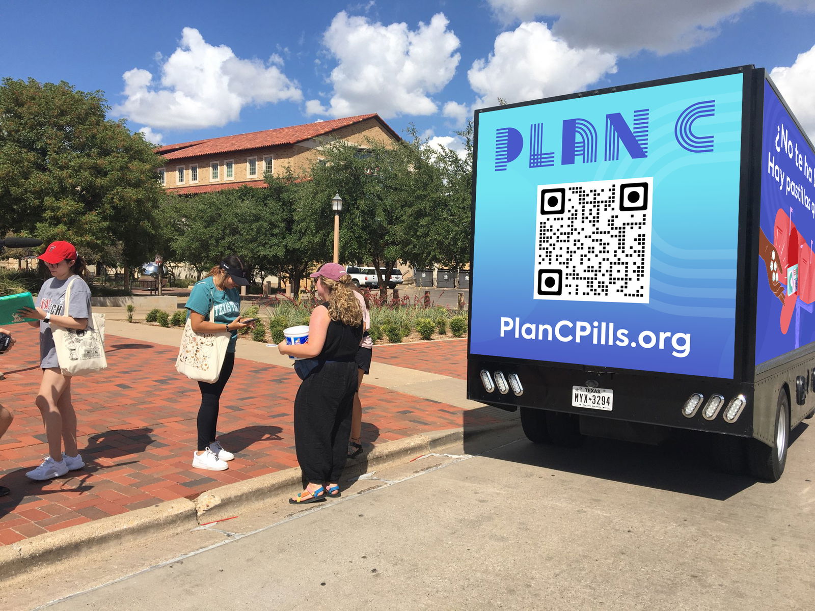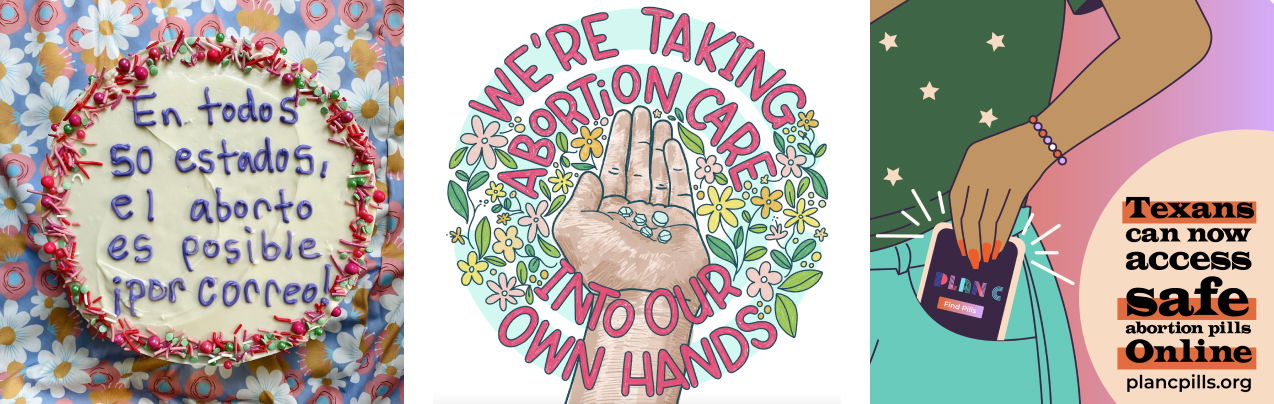 En respuesta a esta situación en desarrollo de un “desierto de abortos” en todo el estado el 1 de septiembre, Plan C tomó medidas: primero, asegurar un camión con vallas publicitarias móviles que recorrería el oeste de Texas en los últimos días de agosto, y segundo, colaborar con un puñado de artistas de Texas para interpretar creativamente el acceso a la pastillas abortivas en línea y el aborto por correo en Texas, encargando obras de arte originales que serían fáciles de amplificar y volver a publicar.